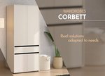 Die Schrankkollektion CORBETT besteht aus vier verschiedenen Modellen in zwei Dekorkombinationen – Artisan-Eiche und schwarze Mattfolie sowie Kaschmir und schwarze Mattfolie. Alle vier Modelle der Schrankkollektion CORBETT zeichnen sich durch unterschiedliche Anordnungen des Nutzraums aus, die Bereiche mit Kleiderstangen, Regalböden sowie ein Teil mit Schubladen umfassen. Alle Modelle verfügen über einen Spiegel, der nicht nur einen praktischen Nutzen hat, sondern auch ästhetischen Wert bietet.