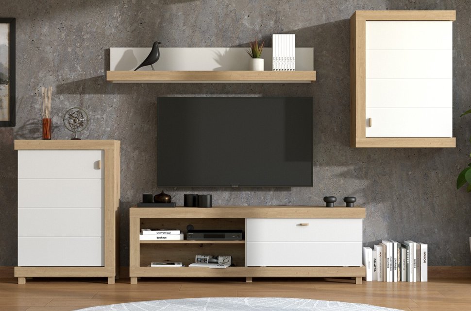 Das Regal HASTINGS kombiniert Artisan-Eiche mit opak-weißem Dekor und bietet eine moderne und funktionale Lösung für die Gestaltung des Wohnzimmers. Es besteht aus vier Segmenten, welche je nach Bedarf räumlich angeordnet werden können. Jedes der Elemente verfügt über einen praktisch organisierten Stauraum, der eine effiziente Aufbewahrung sowie eine ordentliche Organisation ermöglicht. Das Regal HASTINGS zeichnet sich durch kompakte Abmessungen und ein minimalistisches Design aus, wodurch es sich problemlos in moderne Wohnumgebungen einfügt. Es bietet eine harmonische Kombination aus der Wärme des Holzes und der Frische des weißen Dekors. Zudem besteht die Option, das Möbelstück durch eine Beleuchtung zu ergänzen, um eine vollständige Ambiente-Atmosphäre zu erzeugen.