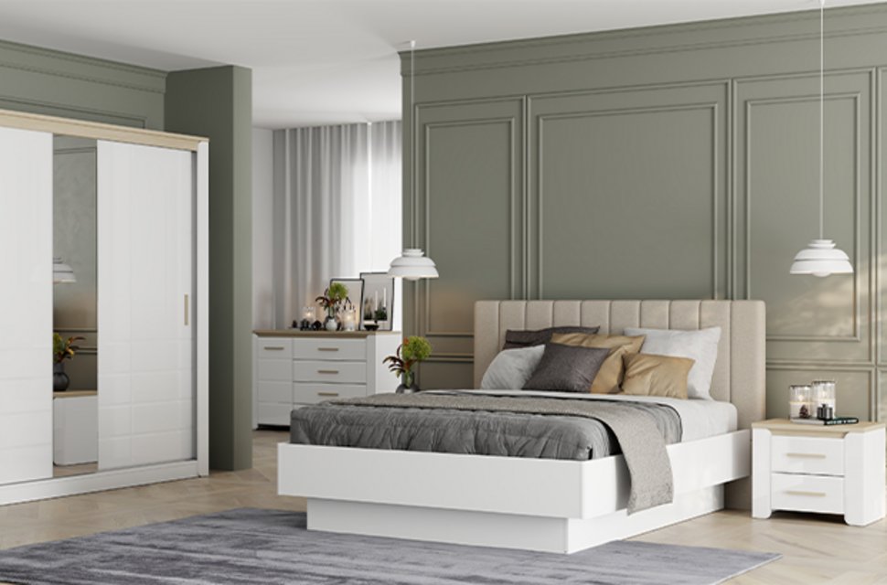Die Kollektion umfasst 6 sorgfältig gestaltete Elemente, die eine komplette Schlafzimmereinrichtung ermöglichen. Dazu gehören: