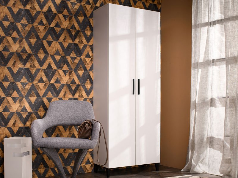 Der Schuhschrank BUSETO 2K, in weißer Farbe ist eine sehr praktische Lösung und mit geschlossenen Schuhregalen bietet es die Möglichkeit einer funktionalen Organisation des Eingangsbereichs.