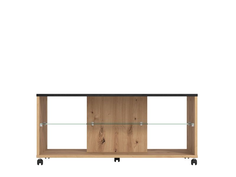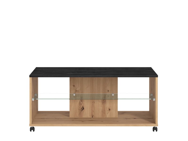 Der Clubtisch NORTE KS besitzt in einer dekorativen Kombination von Eichenholz Artisan und Carbon praktische und ästhetische Vorteile. Das dominierende Detail beim Aussehen dieses Clubtisches ist ein effektives Glasregal unter der Arbeitsfläche für Entsorgung von Ihren beliebten Büchern und Zeitschriften. Der Clubtisch NORTE KS trägt zum modernen thematischen Konzept der Einrichtung des Wohnzimmers bei.