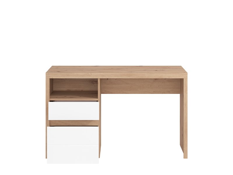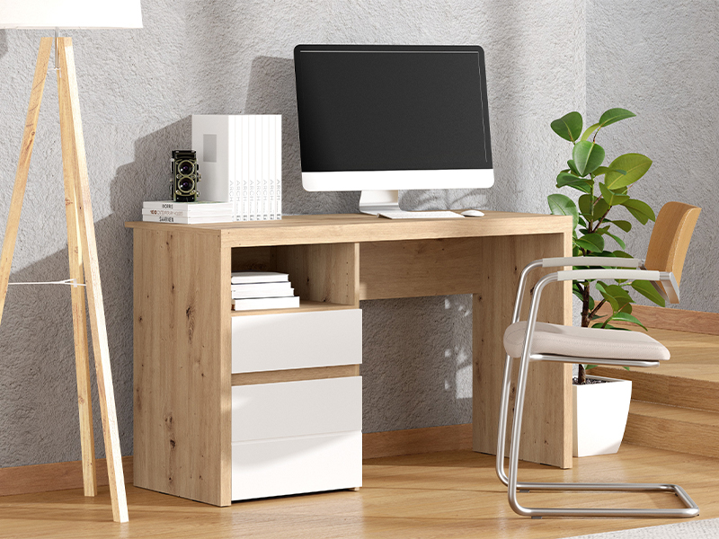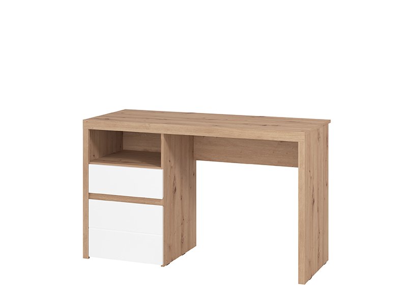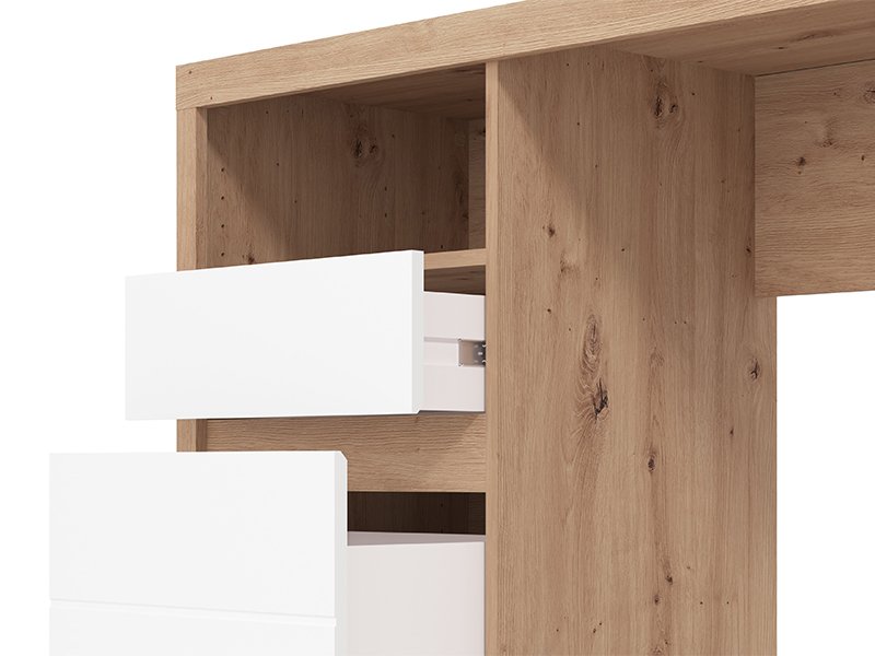 Der Computertisch HIPATIA 2F LP in der Kombination aus Artisan-Eiche, opak-weiß und Artisan-Eiche-Folie zeichnet sich durch ein modernes und elegantes Design mit grifflosen Fronten aus. Neben der Arbeitsfläche umfasst der Stauraum zwei Schubladen – davon eine tiefer ausgeführte – sowie ein offenes Regal, die eine übersichtliche und funktionale Aufbewahrung ermöglichen. Dank seiner kompakten Maße und harmonisch abgestimmten Dekors ist der Computertisch HIPATIA 2F LP ein unverzichtbares Element für die funktionale und übersichtliche Einrichtung des Arbeitsbereichs.