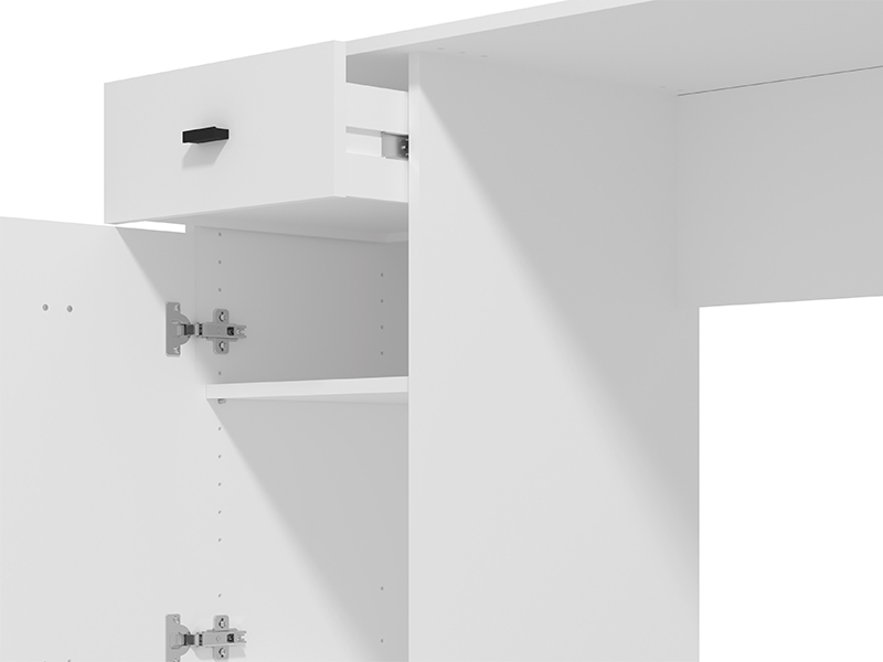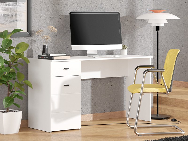 Der Computertisch KEPLER 1F1V im opak-weißen Dekor zeichnet sich durch eine praktische und schlichte Designlinie aus. Neben der Arbeitsfläche umfasst der Stauraum eine kleinere Schublade und ein geschlossenes Fach, die eine übersichtliche und funktionale Aufbewahrung ermöglichen. Dank seiner kompakten Maße und neutralen Ästhetik ist der Computertisch KEPLER 1F1V ein unverzichtbares Element für die funktionale und übersichtliche Einrichtung des Arbeitsbereichs.