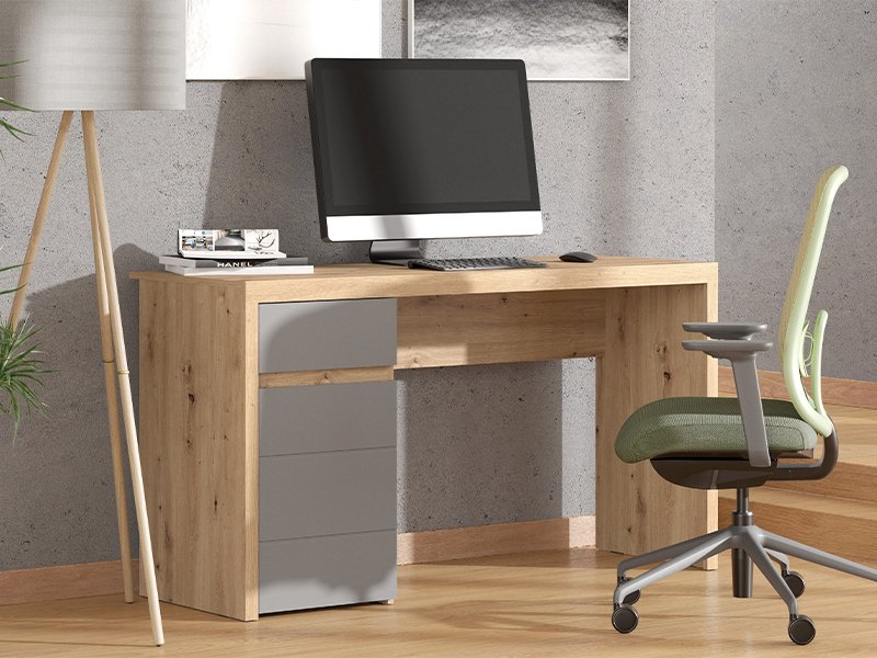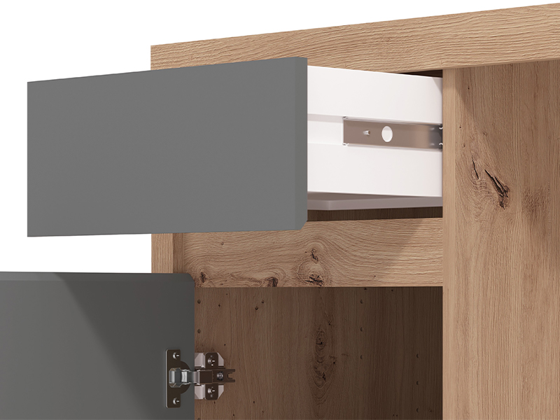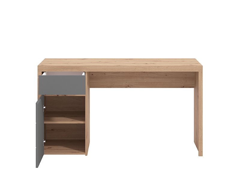 Der Computertisch KEPLER 1F1V LP in der Kombination aus Artisan-Eiche, Grafit-Grau und Artisan-Eiche-Folie zeichnet sich durch ein modernes und elegantes Design mit grifflosen Fronten aus. Neben der Arbeitsfläche umfasst der Stauraum eine kleinere Schublade und ein geschlossenes Fach, die eine übersichtliche und funktionale Aufbewahrung ermöglichen. Dank seiner kompakten Maße und harmonisch abgestimmten Dekors ist der Computertisch KEPLER 1F1V LP ein unverzichtbares Element für die funktionale und übersichtliche Einrichtung des Arbeitsbereichs.