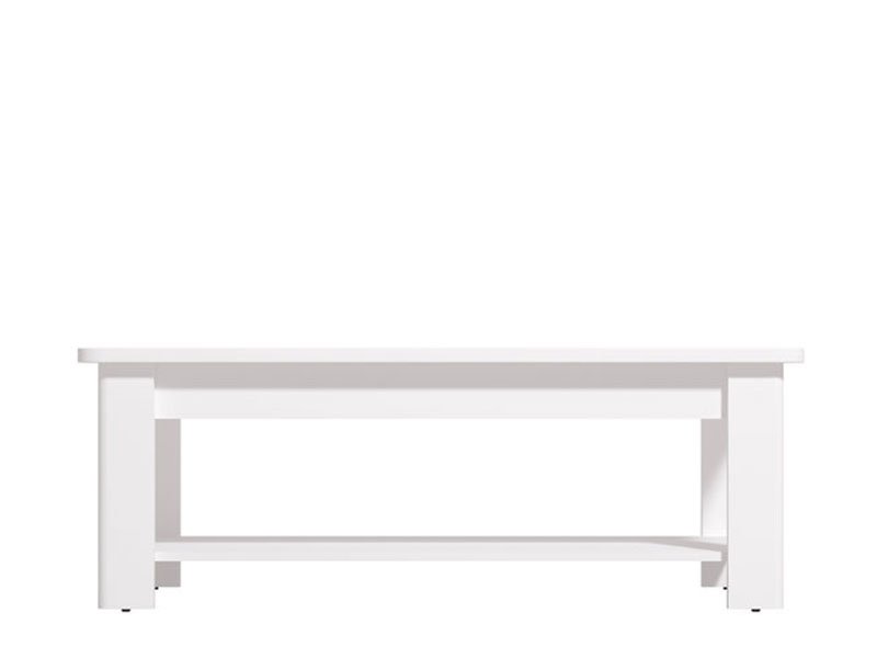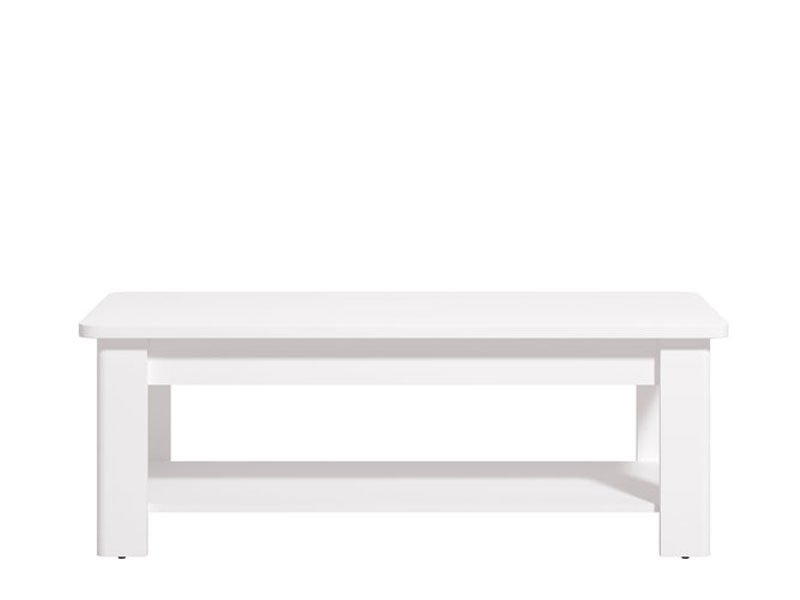 Der Couchtisch JERSEY im weißen Dekor ist ein moderner und funktionaler Zusatz für Ihr Wohnzimmer. Zum hohen Gebrauchswert trägt auch das unterste Regal bei, auf das Sie verschiedene notwendige Kleinigkeiten, Zeitschriften, Bücher stellen können.