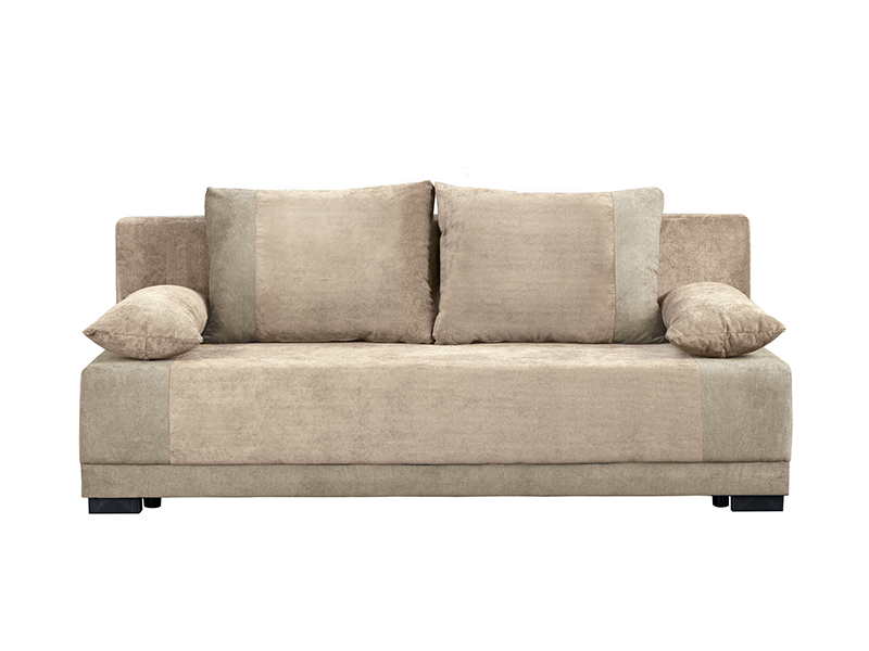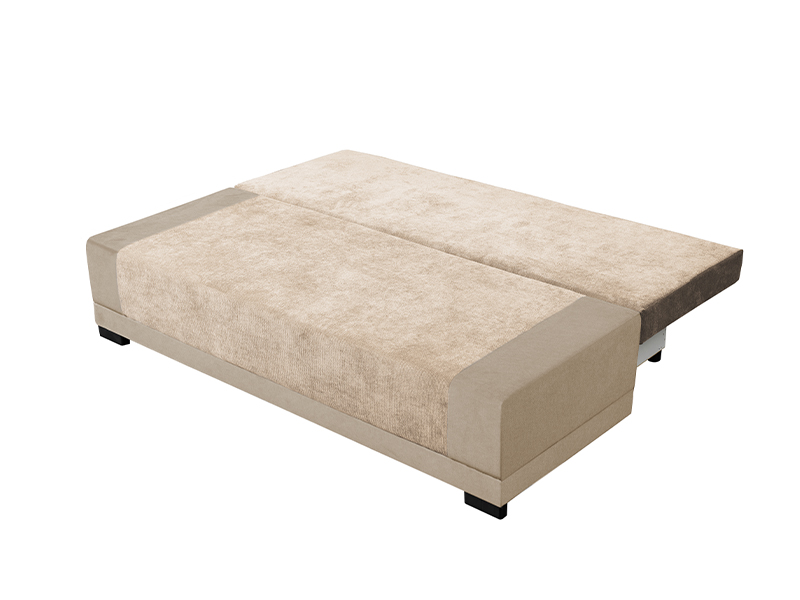 Die genaue Bezeichnung des Musters lautet: Stof RUN AGAIN 06 beige / Stof SORO 21 beige. Das Bett QUATRO eignet sich ideal für Räume unterschiedlicher Größe und Nutzung. Durch Umklappen der Rückenlehne lässt sich dieses Bettmodell in ein 198 x 150 cm großes Bett verwandeln. Die integrierte Bettwäschebox bietet zusätzlichen Stauraum.