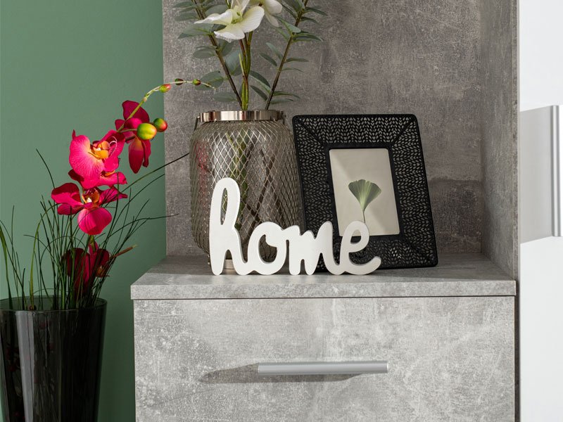 Das Vorzimmer MARTIN im Eichen und opak weißen Design sorgt für ein effektvolles und angenehmes erstes Treffen mit Ihrem Zuhause. Dieses Modell verfügt über einen gut organisierten Raum zum Ablegen der Kleidung und Schuhe, sodass Sie einen funktionalen Raum erhalten, während der zentral positionierte Spiegel ein Gefühl von Geräumigkeit vermittelt.
