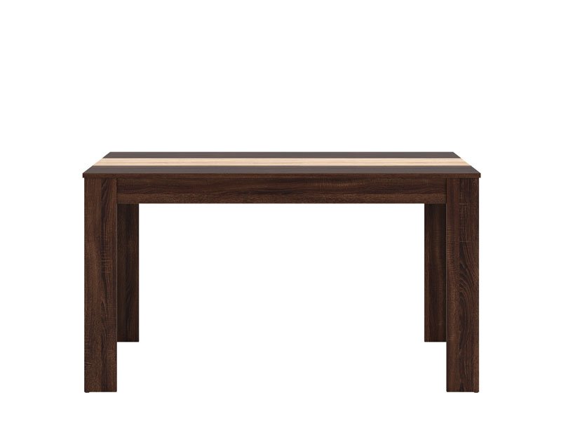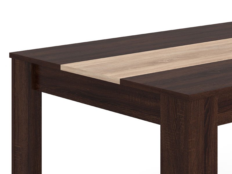 Der Esstisch DOMUS 135x80 in einer Kombination der Dekore Sonoma Eiche und Dunkle Sonoma Eiche trägt zur Umgestaltung des Ambiente bei, und zwar dank der Möglichkeit, bei der Montage eine von zwei Kombinationen des Designs der Arbeitsfläche zu wählen. Verschiedene Kombinationen von zwei Designs auf der Arbeitsplatte lassen den Esstisch DOMUS 135x80 ästhetisch in verschiedene Kompositionen im Interieur passen.