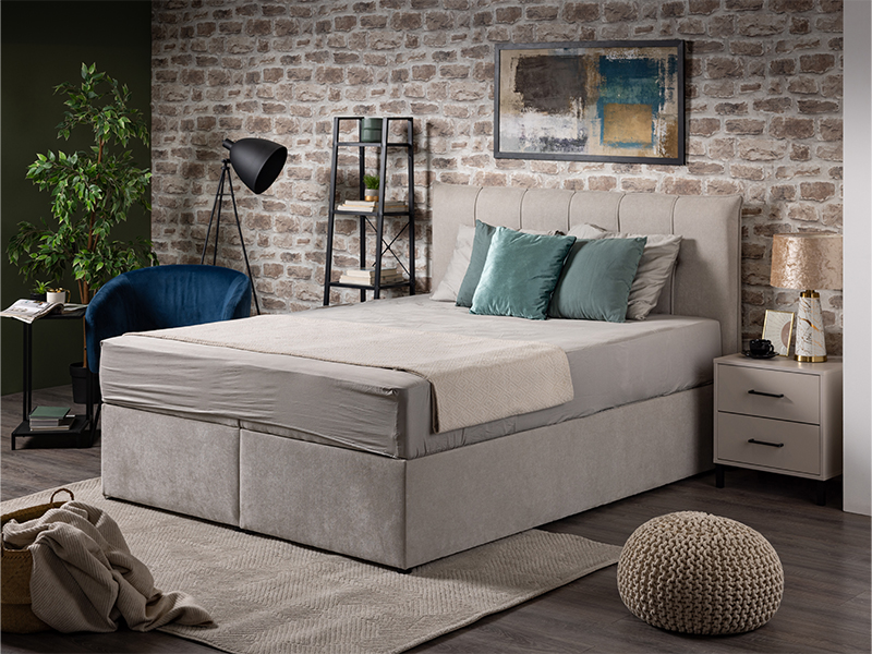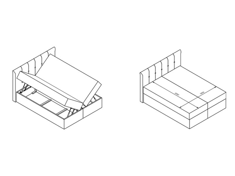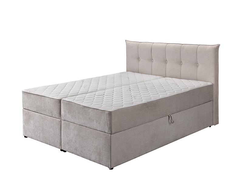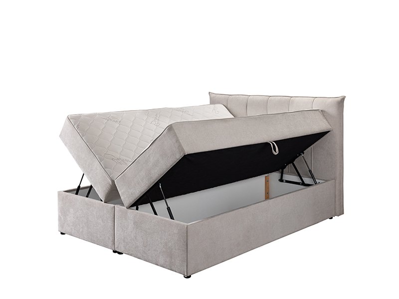 Das Französische Bett LORENZO ist eine elegante und funktionale Lösung für das modern eingerichtete Schlafzimmer. Die Schlaffläche mit den Abmessungen 160 x 200 cm ist mit einem Bonnell-Federkern und Schaumstoff gefertigt, was eine stabile und bequeme Stütze bietet. Das Bett ist mit einem praktischen Klappmechanismus ausgestattet – Scherenmechanismus mit Gasdruckfedern – der ein leichtes Anheben ermöglicht. Es verfügt über zwei Aufbewahrungskästen für Bettwäsche. Der gepolsterte Rahmen und das Kopfteil tragen zusammen mit der stilvollen Designlinie zum ästhetischen Wert und zum Komfort des Raumes bei.