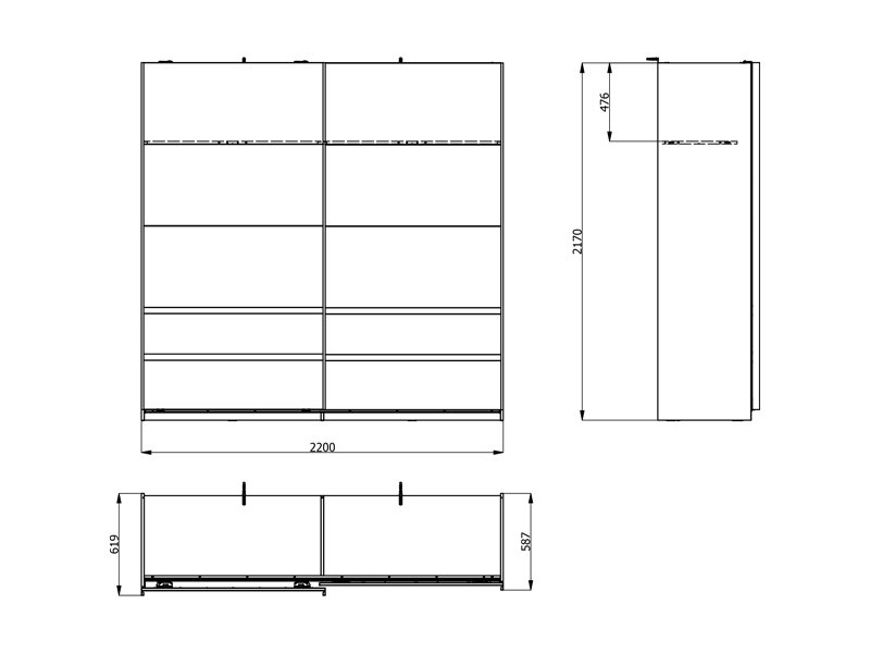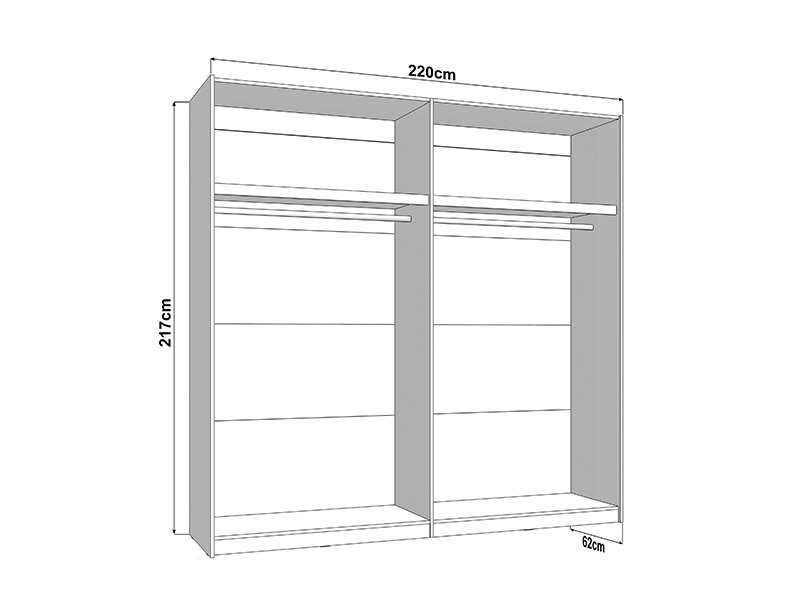 In seiner Grundausstattung umfasst der Stauraum zwei Kleiderstangen, die eine übersichtliche und praktische Aufbewahrung der Kleidung ermöglichen.