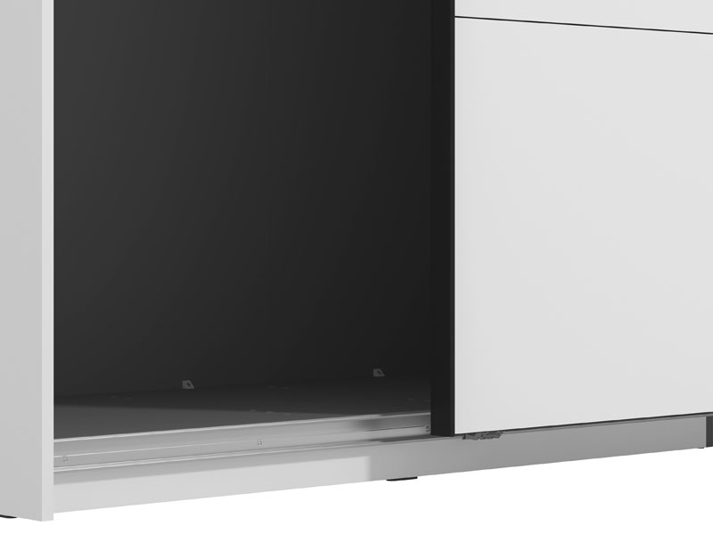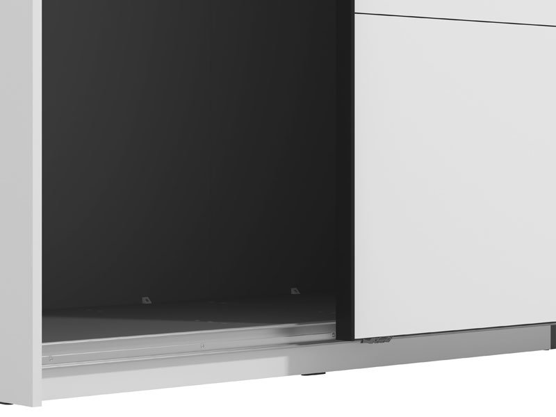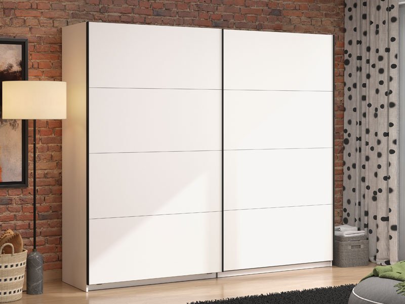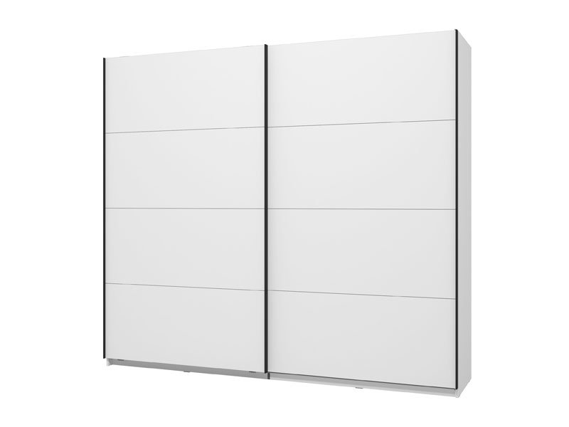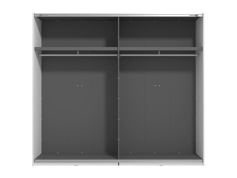 Das Kleiderschrankmodell GARD 245 h217 mit Schiebetüren, in opak-weißem Dekor, trägt zur Funktionalität, Ästhetik und maximalen Raumausnutzung des Innenraums bei. Der Stauraum dieses Modells umfasst die Kleiderstangen für die Garderobe und je ein praktisches Regal auf der linken und rechten Seite. Optional kann es mit einem für dieses Kleiderschrankmodell geeigneten Regal-Set oder mit einer Vertikale und Regalen sowie mit Türdämpfern für leises, sanftes Schließen der Schiebetüren nachgerüstet werden.
