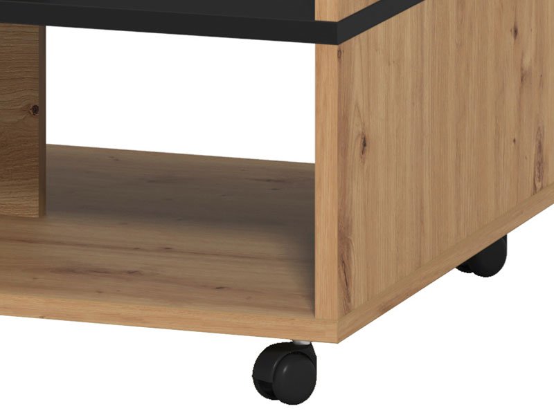 Der Couchtisch SAVIO, in einer Dekorkombination aus schwarzem Dekor und Artisan Eiche, hat praktische und ästhetische Vorteile.