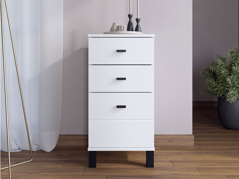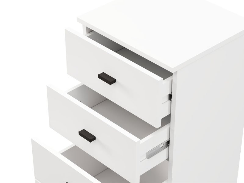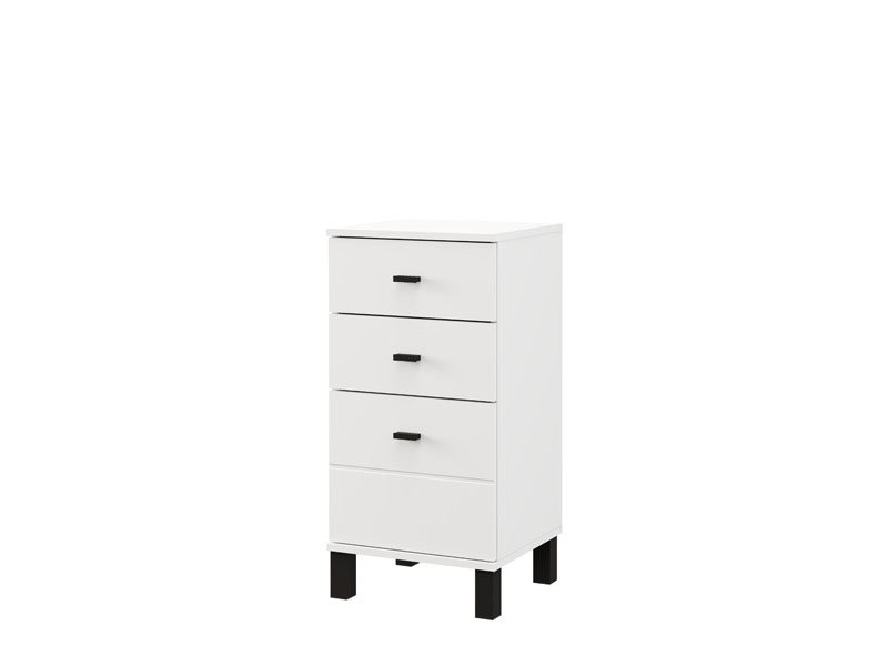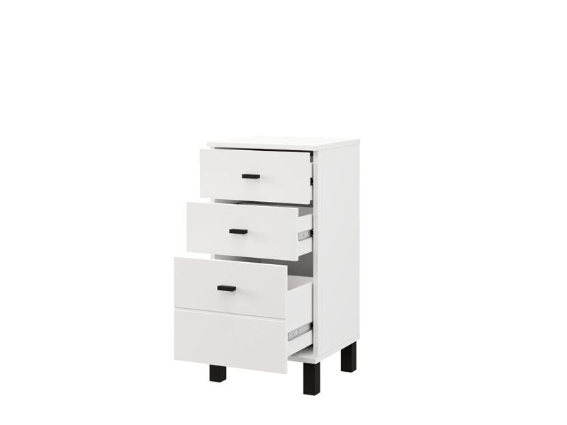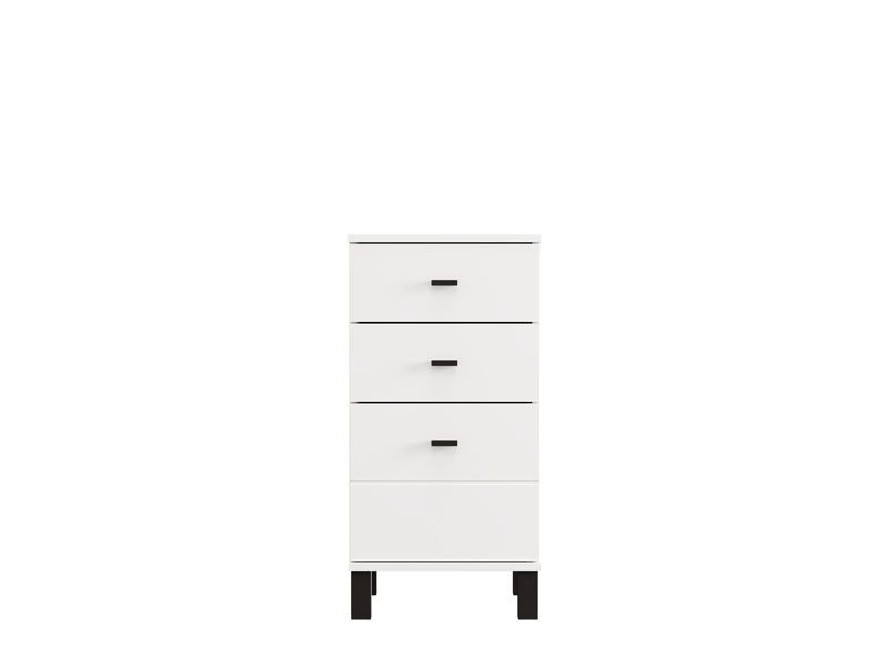 Die Kommode ALMOND 38 3F im opak-weißen Dekor ist ein schmaleres Kommodenmodell, das funktionalen Stauraum durch drei Schubladen bietet, von denen eine tiefer ist. Sie eignet sich hervorragend als ergänzendes Möbelstück im Flur, Wohnzimmer, Schlafzimmer oder Kinderzimmer.