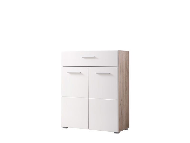 Die Kommode BENY 2K1F verfügt über zwei praktische Einlegeböden und eine Schublade, für eine ökonomische Organisation Ihres Vorzimmers. Sie kann mit gleichnamigen Elementen kombiniert werden, die das Interieur im Eingangsteil Ihres Heims abrunden.