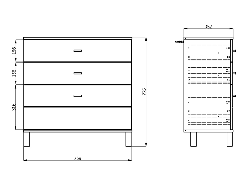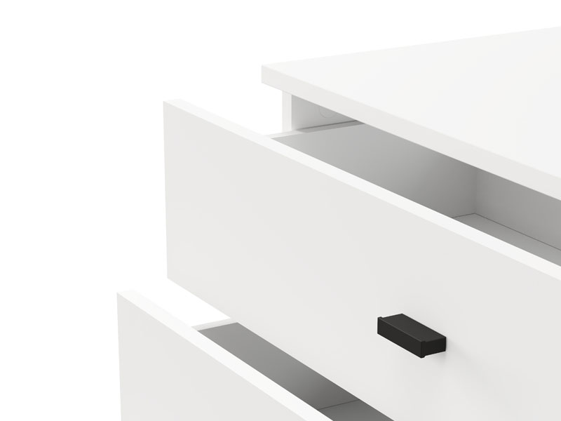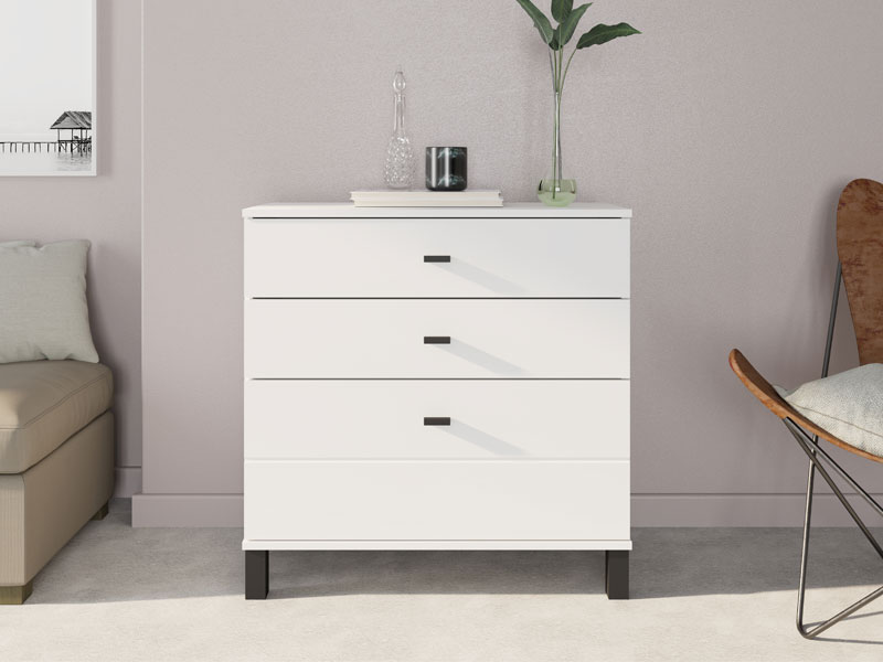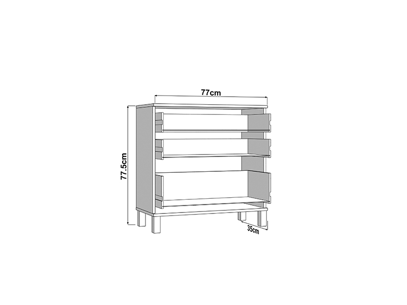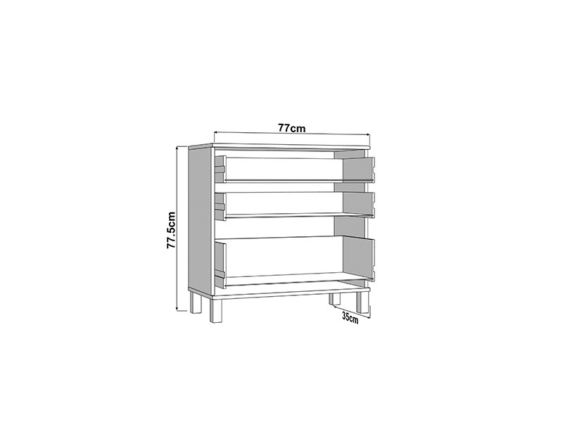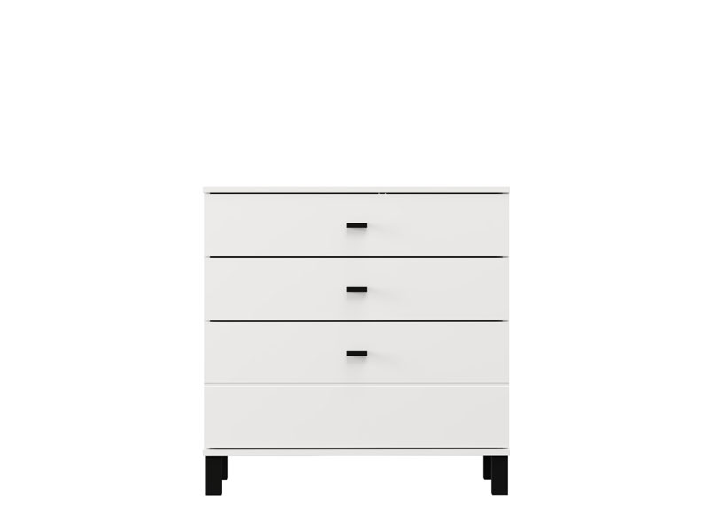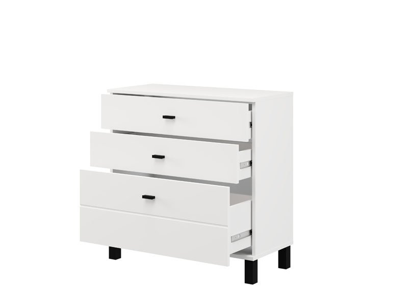 Kommode ALMOND 77 3F im opak-weißen Dekor, zeichnet sich durch ein einfaches und funktionales Design aus. Der Stauraum besteht aus drei Schubladen, von denen eine tiefer ist und für die Aufbewahrung größerer Gegenstände geeignet dient, während die anderen beiden für kleinere Gegenstände geeignet sind. Dank ihrer kompakten Maße und neutralen Ästhetik ist die Kommode ALMOND 77 3F eine praktische Lösung für die Einrichtung von Schlafzimmer, Flur oder kleinerer Wohnbereiche.