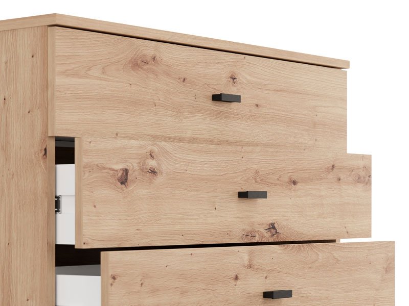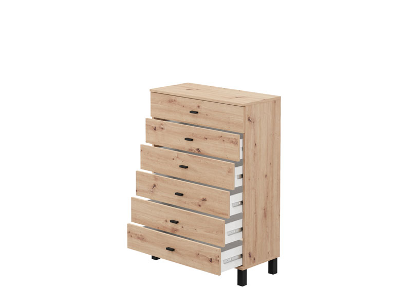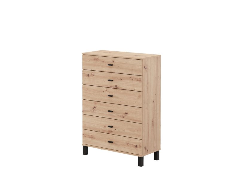 Die Kommode ALMOND 77 6F im Artisan-Eiche-Dekor verleiht dem Raum Wärme und natürliche Eleganz mit minimalistischem Design und hoher Funktionalität. Der Stauraum besteht aus sechs praktisch angeordneten Schubladen, die eine übersichtliche und einfache Aufbewahrung verschiedener Gegenstände ermöglichen. Dank ihrer kompakten Maße und des angenehmen Holzdekors ist die Kommode ALMOND 77 6F eine ideale Wahl für die Einrichtung des Schlafzimmers, Flurs oder Wohnbereichs, wo sie sich problemlos in moderne und warme Interieurs einfügt.