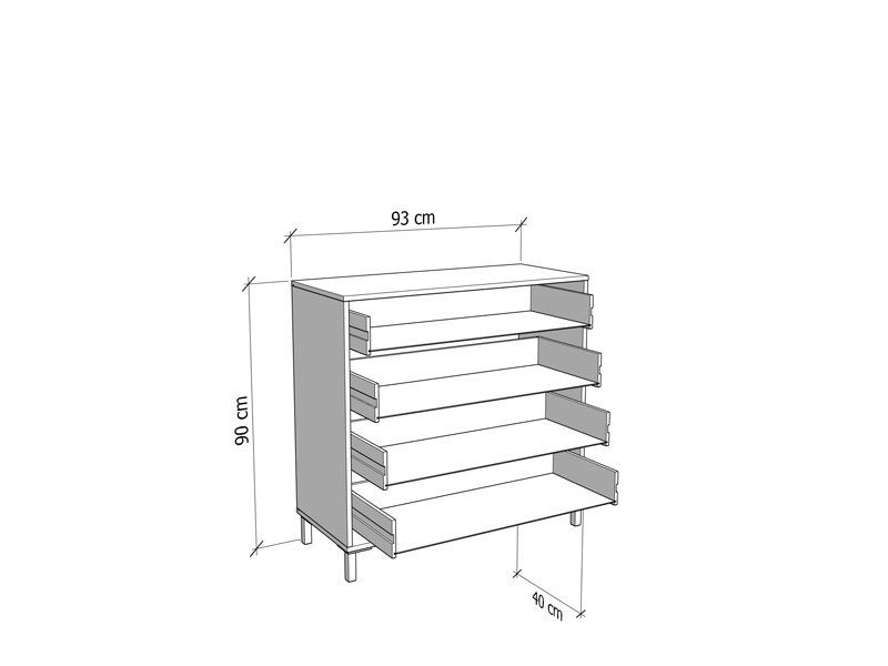 Die Kommode VIENNE 4F im Dekor Opakweiß ist so konzipiert, dass sie dank des Stauraums, den die vier geräumigen Schubladen bieten, zu den Elementen mit hohem Gebrauchswert gehört. Die Kommode VIENNE 4F eignet sich für die Einrichtung des Flurs, des Wohnzimmers, des Kinder- oder Schlafzimmers.