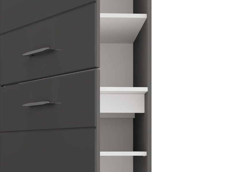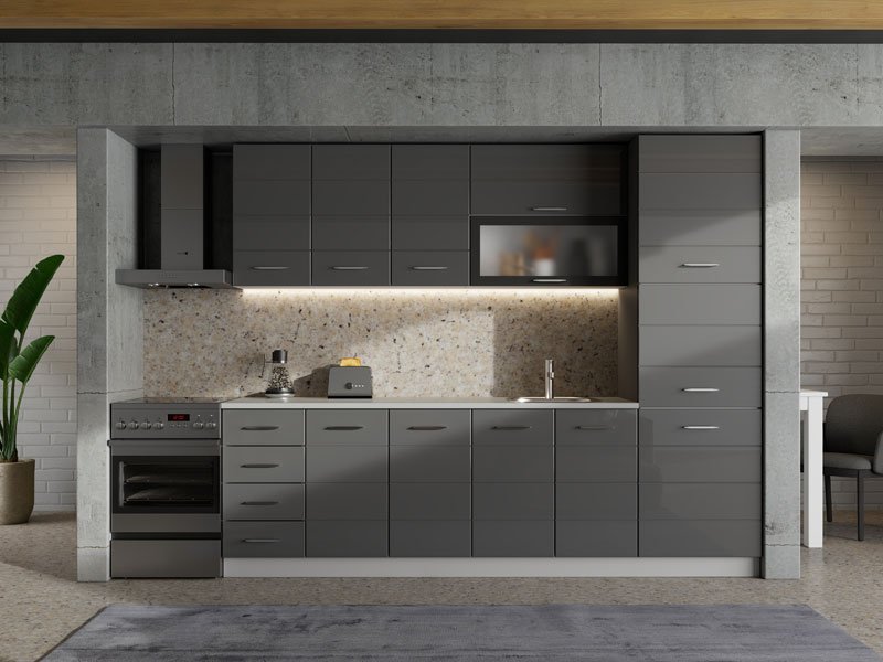 Das Küchenelement UNA BD 60 UR, ausgeführt in der Kombination aus Grafit-Grau-Dekor und grauer Lackfolie, ist für die Aufbewahrung beziehungsweise den Einbau von Küchengeräten konzipiert und stellt eine praktische Lösung zur optimalen Organisation des Küchenraums dar. Das reduzierte Design mit klaren Linien und neutralen Tönen ermöglicht eine harmonische Integration mit der Küche UNA 200 und trägt zur Funktionalität sowie zum eleganten, aufgeräumten Erscheinungsbild des gesamten Raumes bei.