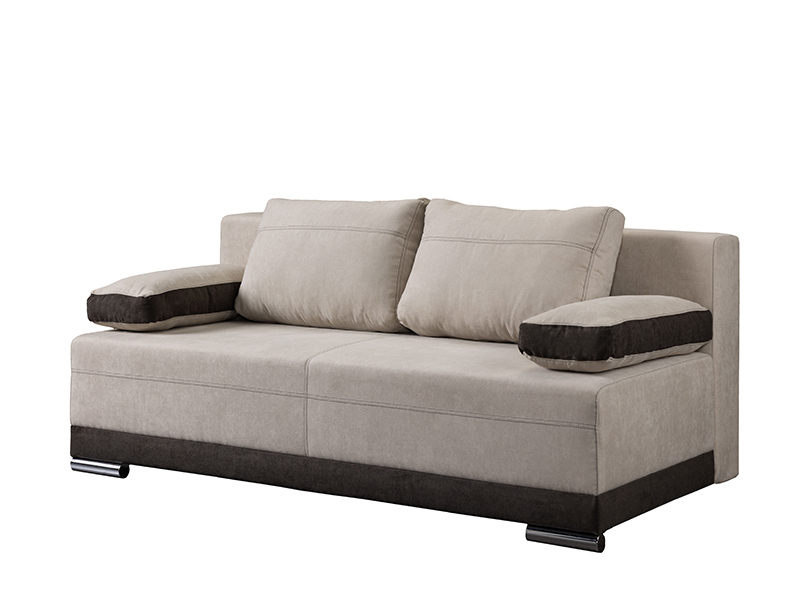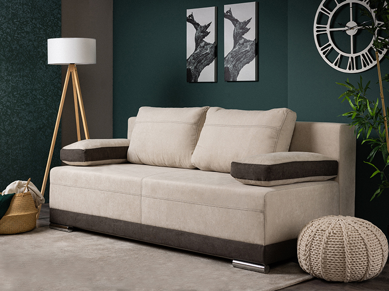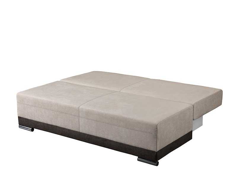 Die genaue Bezeichnung des Musters lautet: Stoff SORO 21 beige / Stoff SORO 24 braun. Das Bett KRON eignet sich ideal für Räume unterschiedlicher Größe und Nutzung. Dieses Bettmodell lässt sich mit dem Klappmechanismus der Rückenlehne in ein 150 x 198 cm großes Bett verwandeln. Zur Funktionalität des Bettes trägt auch der integrierte Bettkasten bei.