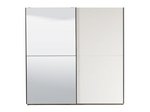 Nachttisch KSANTI NO2F, in opak weißem Design mit Fronten beschichtet mit weißer 3D MDF Lack Folie, macht einen Teil der gleichnamigen Kollektion von Elementen für Schlafzimmer aus. Der Nachttisch KSANTI N02F hat zwei praktische, vertikale Schubladen.