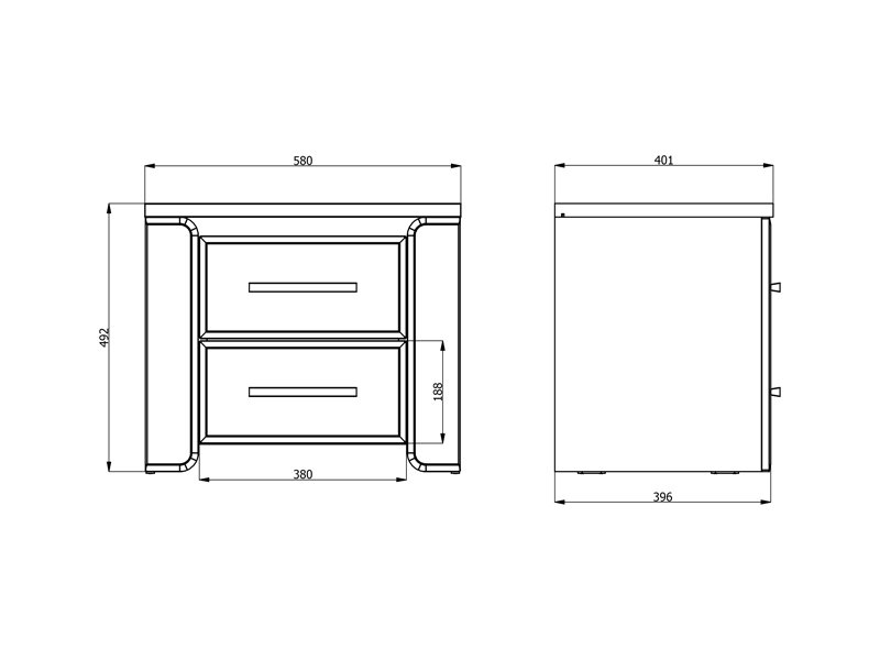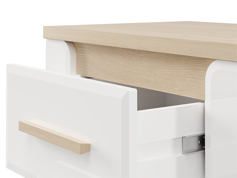 Der Stauraum des Nachttischs besteht aus zwei Schubladen, die eine praktische Aufbewahrung von Kleinigkeiten ermöglichen.