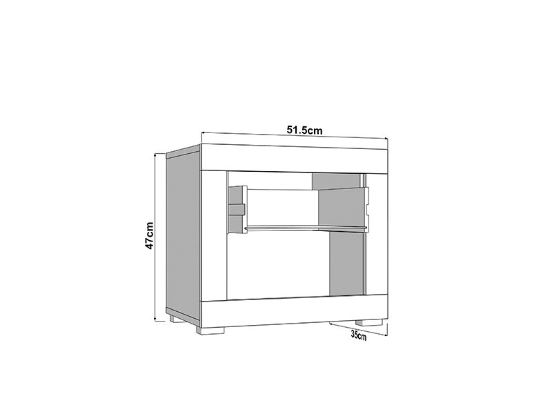 Der Stauraum des Nachttischs besteht aus einer Schublade und einem offenen Regal, die eine praktische Aufbewahrung von Kleinigkeiten und Alltagsgegenständen ermöglichen.