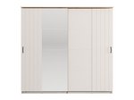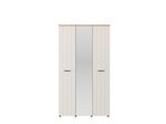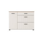 "Der Nachttisch LAMBETH NO1F1V, ausgeführt in der Kombination aus Kaschmir und Artisan-Eiche-Dekor, verleiht dem Schlafzimmer ein warmes und rustikales Erscheinungsbild und betont die klar definierte geometrische Designlinie sowie die eingeprägten Rillen auf den Fronten.