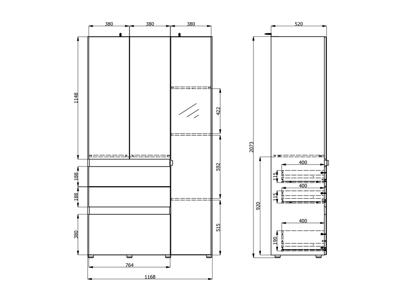 Der Schrank ARDERIN 3K3F1O h207 in der Kombination aus Artisan-Eiche und Grafit-Grau-Dekor stellt eine elegante und moderne Lösung zur Aufbewahrung von Kleidung dar. Der Stauraum umfasst einen zweiflügeligen Bereich mit einer Kleiderstange, unter der sich drei Schubladen befinden – zwei flachere und eine tiefere – sowie ein Fachsegment hinter der Front mit Spiegel, was eine übersichtliche und praktische Organisation von Kleidung und Accessoires ermöglicht. Es besteht die Möglichkeit, den Innenraum durch zusätzliche Regalsätze zu ergänzen, um zusätzliche Funktionalität zu gewährleisten.