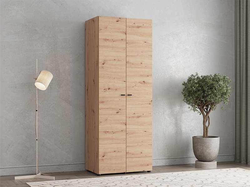 Der Schrank NEVIS 2K h207 im Artisan-Eiche-Dekor stellt eine praktische und funktionale Lösung zur Aufbewahrung von Kleidung dar. Ausgestattet mit einem praktischen Stauraum mit Kleiderstange ermöglicht er eine ordentliche Organisation der Kleidung. Das schlichte und moderne Design erlaubt eine problemlose Integration dieses Modells in unterschiedliche Interieurs. Er ist Teil der Schrankkollektion NEVIS und lässt sich mit weiteren Modellen dieser Linie kombinieren.