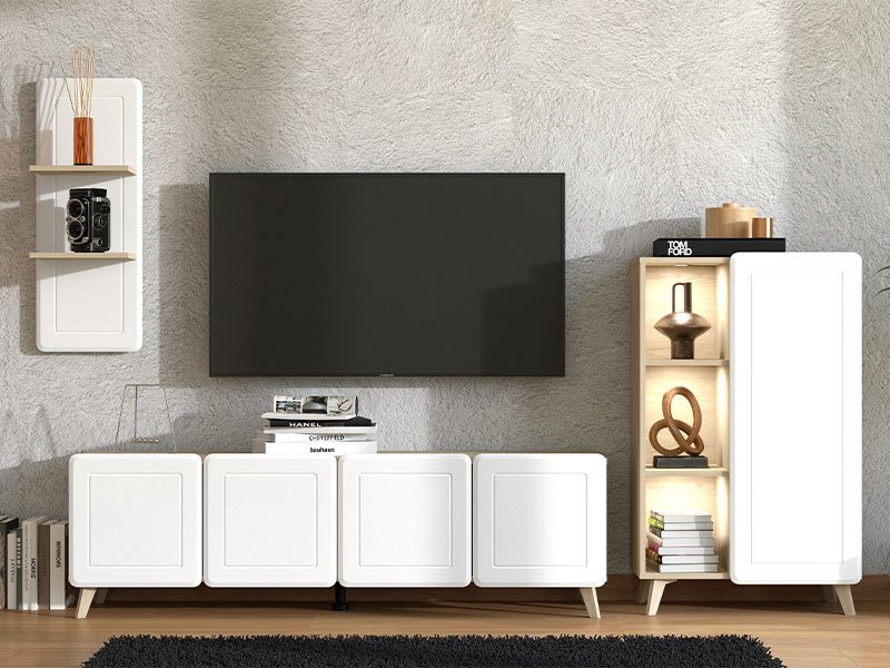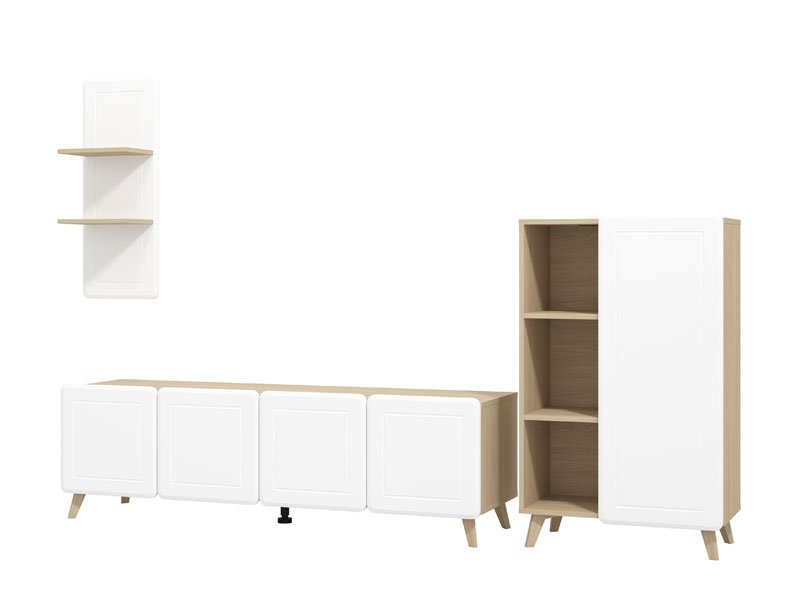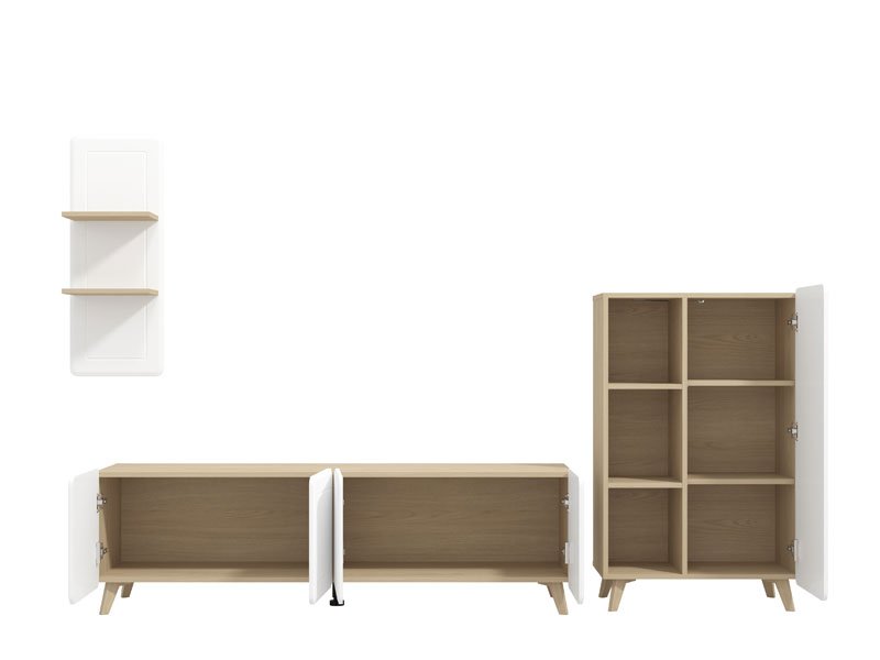 Das Regal ANDROS kombiniert Artisan-Eiche-Dekor mit Artisan-Eiche mit Streifen und bietet eine moderne und funktionale Lösung für die Gestaltung des Wohnzimmers. Mit kompaktem und reduziertem Design ermöglicht das Regal ANDROS eine praktische Raumeinrichtung dank offener und geschlossener Regalen sowie einer Fläche für Fernsehgeräte bis zu 50". Dank der gut durchdachten Stauraumaufteilung fügt es sich problemlos in moderne Wohnambiente ein.