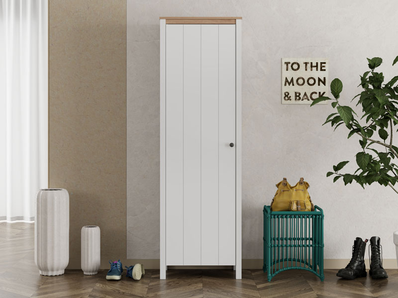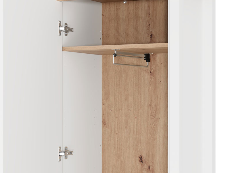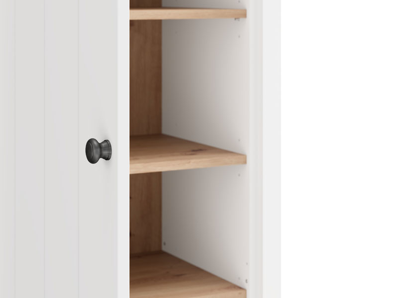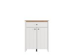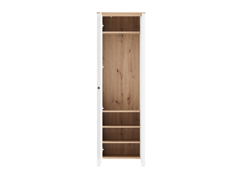 Das Eingangsbereichelement BEDFORD P1 kombiniert opak-weißes Dekor, Artisan-Eiche, weiße Mattfolie und Artisan-Eiche-Folie und verleiht dem Raum eine elegante, warme und anspruchsvolle Atmosphäre, die moderne Interieurs benötigen. Das Modell besitzt einen praktischen Stauraum, der aus Regalen zur Aufbewahrung von Schuhen besteht und eine ordentliche sowie funktionale Organisation ermöglicht. BEDFORD P1 ist Bestandteil der gleichnamigen Kollektion für den Eingangsbereich und wurde konzipiert, um eine vollständige sowie harmonische Gestaltung des Eingangsbereichs zu gewährleisten.