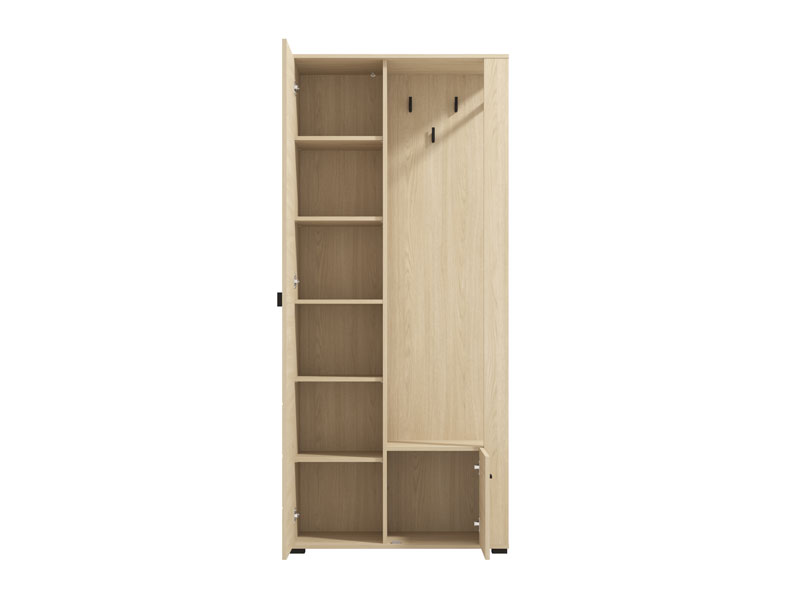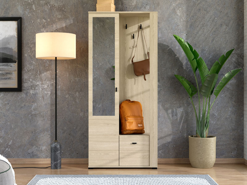 Der Eingangsbereich DRAKE im hellen Port-Eiche-Dekor erzeugt beim ersten Betreten Ihres Zuhauses eine Atmosphäre von Wärme und natürlichem Charme. Das Modell zeichnet sich durch ein kompaktes Design aus und stellt harmonisch organisierten Stauraum für die Aufbewahrung von Saisonkleidung und Schuhen bereit, wodurch Funktionalität und Ordnung im Raum erzielt werden. Die praktische Gestaltung erzeugt einen angenehmen und modernen Eingangsbereich, der zugleich natürliche Wärme und modernen Stil vermittelt.