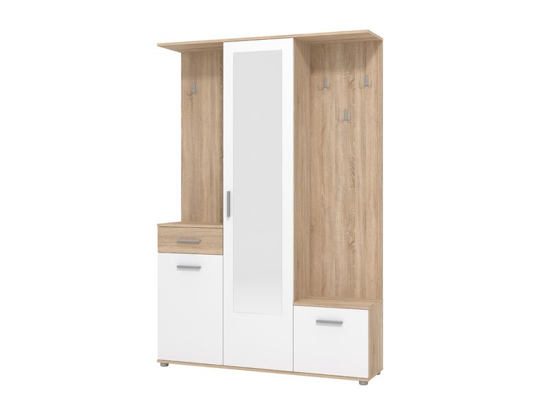 Der Eingangsbereich MARTIN wird die erste Begegnung mit Ihrem Heim zu einem effektvollen und angenehmen Erlebnis machen. Dieses Modell besitzt einen harmonisch organisierten Raum für das Ablegen von Saisonkleidung und Schuhen, sodass Sie einen funktionell organisierten Raum erzielen, während der zentral positionierte Spiegel zu einem Gefühl der Geräumigkeit beiträgt.