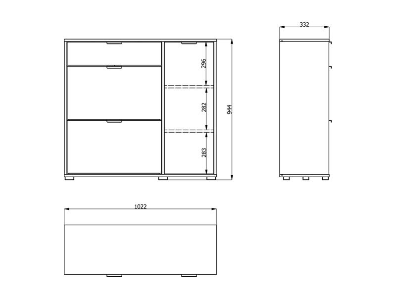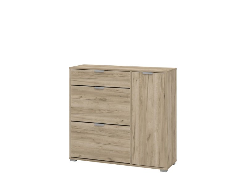 Der Schuhschrank ARCO 2 stellte eine ideale Lösung für das Anpassen in Räumen mit unterschiedlichen Abmessungen dar. Dieses Modell verfügt über zwei Segmente für das Ablegen von Schuhen sowie eine praktische Schublade und einen rechts positionierten Teil mit zwei Einlegeböden.