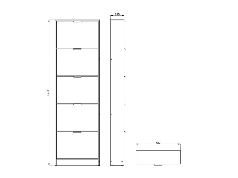 Der Schuhschrank BASE 15 verfügt über fünf Regale für die Entsorgung von Saisonschuhen und ist dank seiner Abmessungen eine funktionelle Lösung für die Einrichtung kleinerer Vorräume.