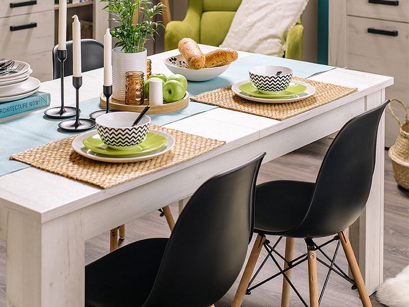 Der Esstisch OSCAR TS 160x90 kann mit den übrigen Elementen im Esszimmer leicht kombiniert werden. Dieses Modell kann erweitert werden, und zwar bis hin zu einer Arbeitsfläche von 200,5x90,5cm.
