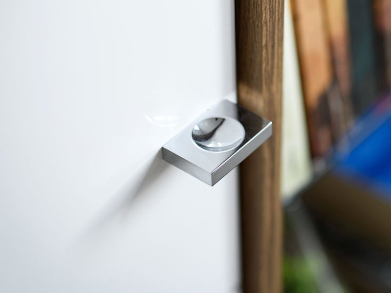 Das Fernsehregal BURGUNDY TV 160 3K2V in einer Kombination aus warmem Flagstaff Eiche und weiß lackierter Folie. Es stellt ein neues Maß an ästhetischer Kühnheit dar, das die modernsten Wohnungen auszeichnet, während die Metallgriffe dem Design dieses Elementsystems zusätzliche Ernsthaftigkeit verleihen. Zwei seitlich geschlossene Teile sowie ein offener Teil mit Glasablage tragen wirkungsvoll zur funktionalen Organisation des Wohnzimmers bei. Es ist möglich, Beleuchtung hinzuzufügen, und die geschlossenen Abteilungen zeichnen sich durch ein "Soft-Close"-Schließsystem aus. Es ist Teil des gleichnamigen Elementesystems zur Einrichtung des Wohnzimmers mit einer schlichten Gestaltungsform, die den Innenraum klar definiert.