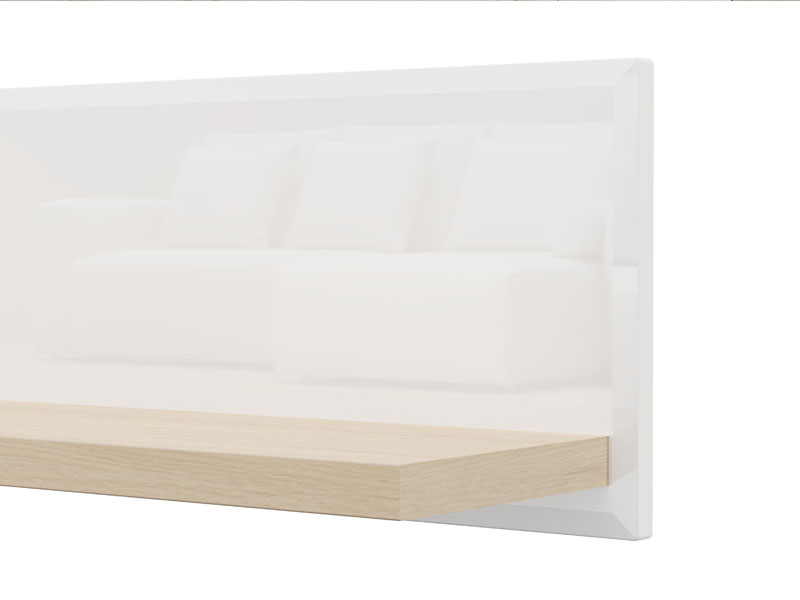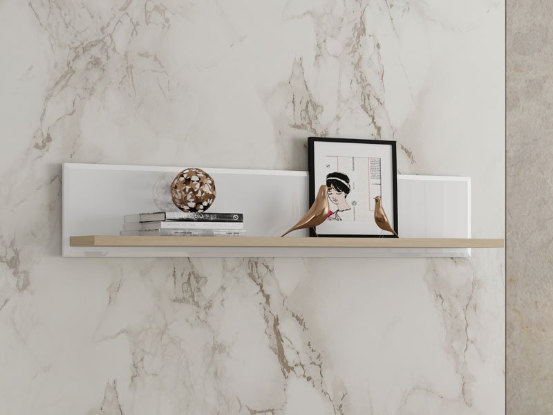 Das Wandregal ABERDEEN ZP kombiniert helles Port-Eiche-Dekor mit weißer Hochglanzfolie und verleiht dem Raum Eleganz sowie einen minimalistischen und makellosen Stil. Es bietet einen praktischen und organisierten Stauraum für die Aufbewahrung von Büchern, Dekorationsdetails oder Kleinigkeiten und trägt so zur Funktionalität des Wohnzimmers bei. Das Regal-Design folgt der Linie des ABERDEEN-Elementesystems und betont das moderne Erscheinungsbild sowie die Harmonie mit den anderen Kollektionselementen.